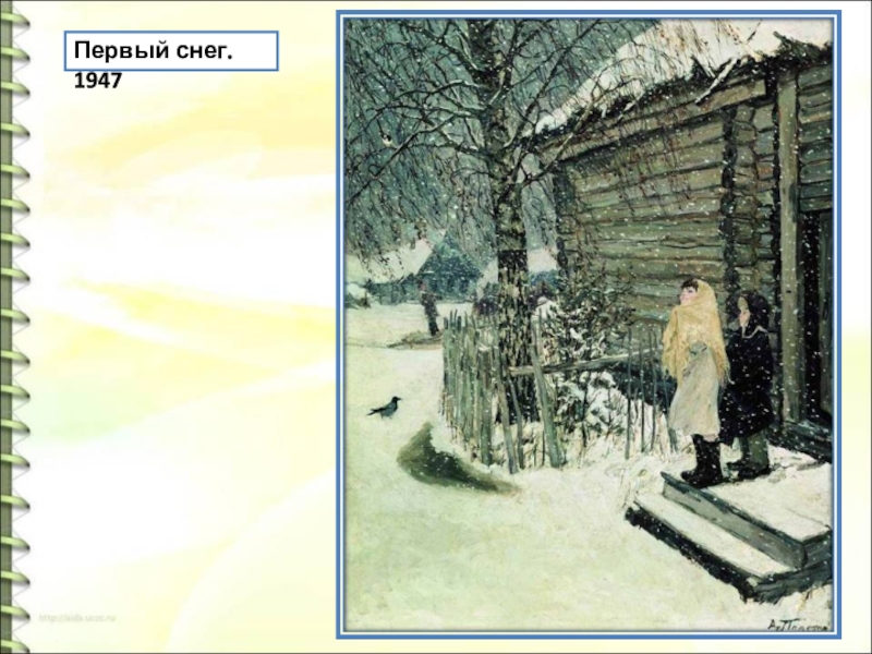 Слайд 33 А.А.Пластов на картине "Первый снег" изобразил начало