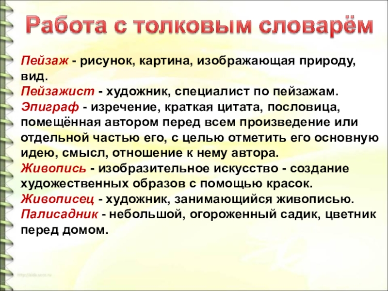 Слайд 10Пейзаж - рисунок, картина, изображающая природу, вид.