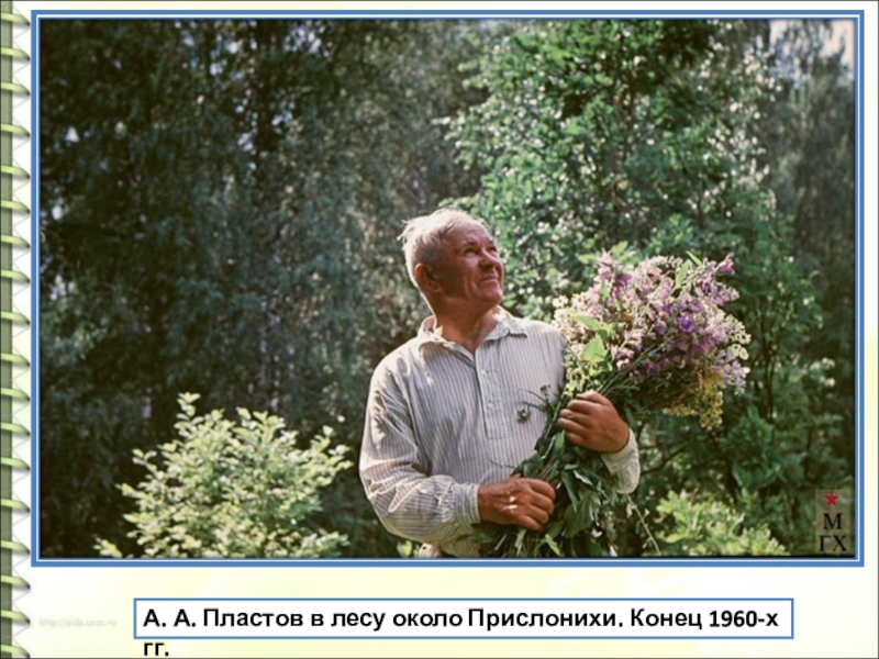 Слайд 9А. А. Пластов в лесу около Прислонихи. Конец 1960-х гг.