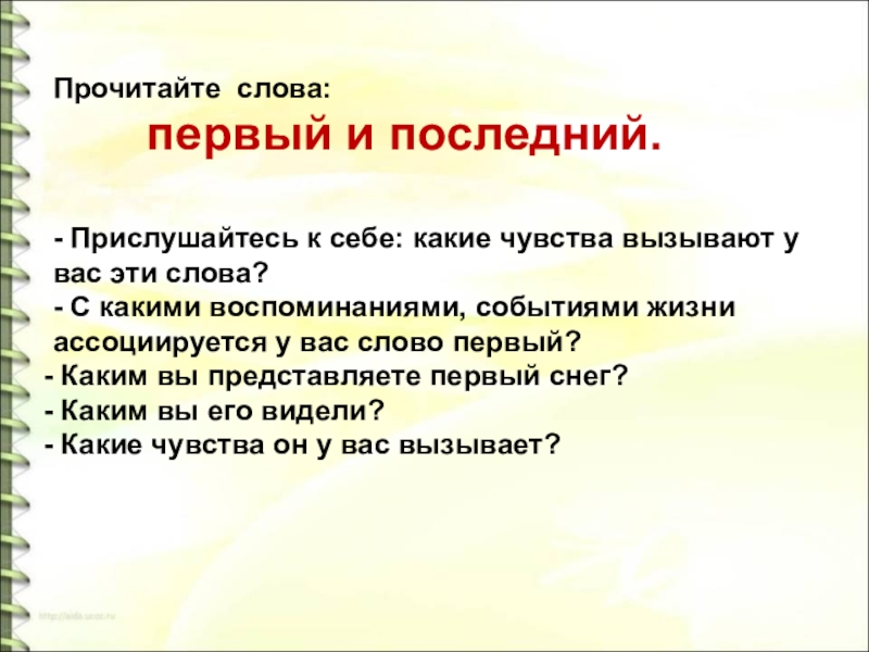 Слайд 13 Послушайте, как о первом снеге сказал К.Г. Паустовский: