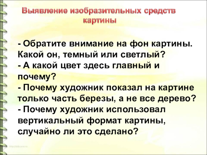 - Почему художник показал на картине только часть березы, а не все дерево?