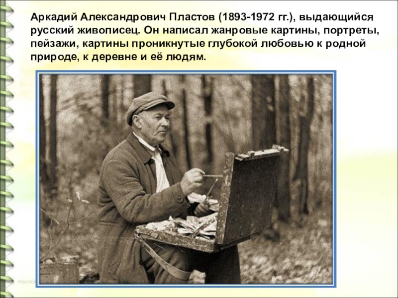 Слайд 4Аркадий Александрович Пластов (1893-1972 гг.), выдающийся русский живописец. Он написал жанровые