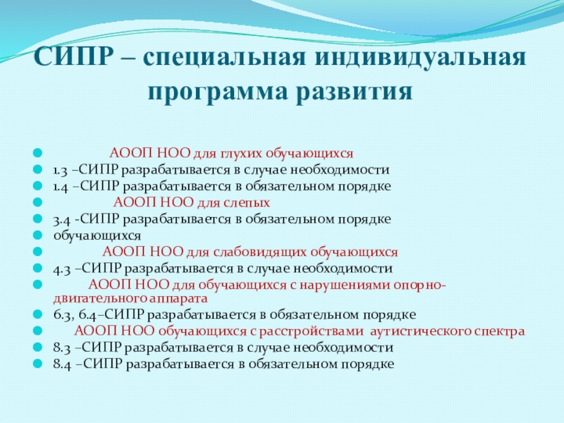 2 вариант реализации –СИПР разрабатывается в обязательном порядке .
