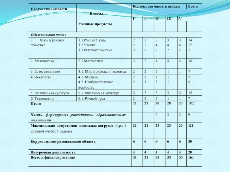 Обязательные предметные области учебного плана и учебные предметы соответствуют ФГОС НОО.