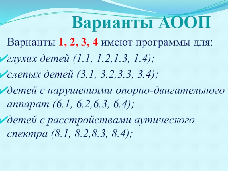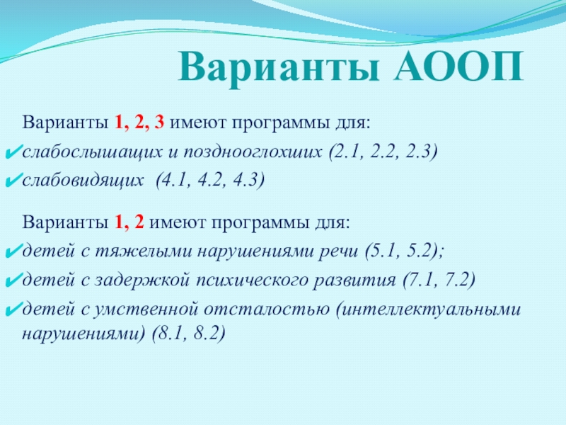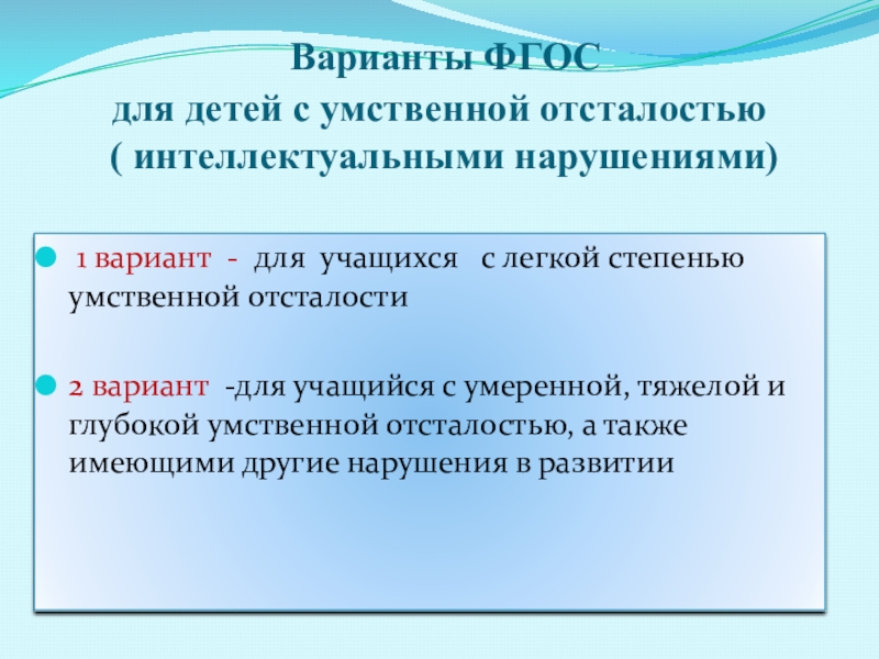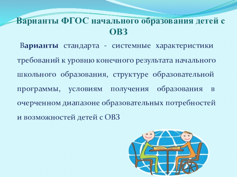 Слайд 7 Варианты ФГОС начального образования детей с ОВЗ