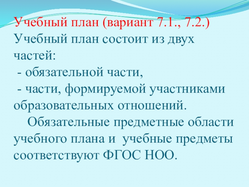 Слайд 22Учебный план (вариант 7.1., 7.2.)