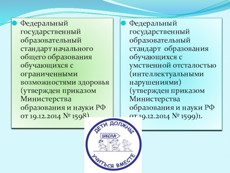 Федеральный государственный образовательный стандарт начального общего образования обучающихся с ограниченными возможностями здоровья (утвержден приказом Министерства образования и науки РФ от 19.12.2014 № 1598)