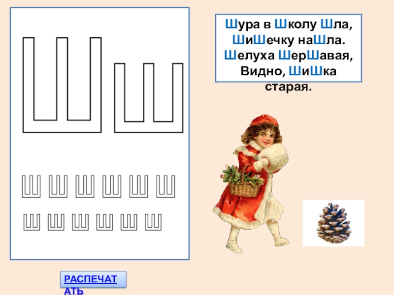РАСПЕЧАТАТЬШура в Школу Шла, ШиШечку наШла. Шелуха ШерШавая, Видно, ШиШка старая.