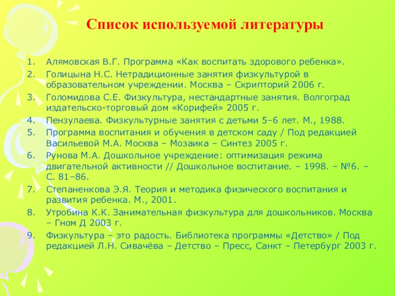 Слайд 9Алямовская В.Г. Программа «Как воспитать здорового ребенка».
