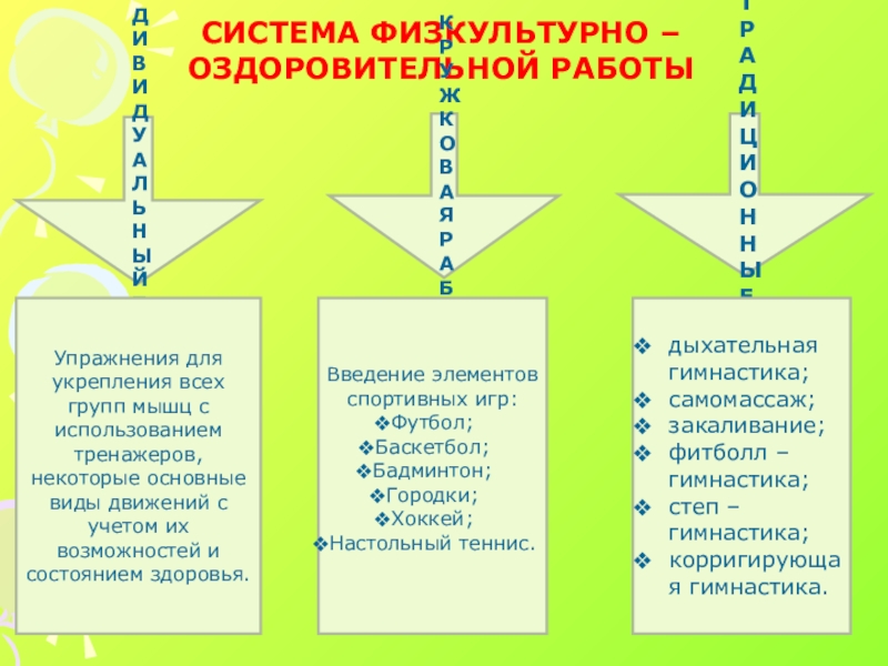 Слайд 6СИСТЕМА ФИЗКУЛЬТУРНО – ОЗДОРОВИТЕЛЬНОЙ РАБОТЫ