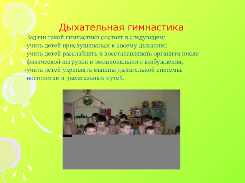 учить детей укреплять мышцы дыхательной системы, носоглотки и дыхательных путей.