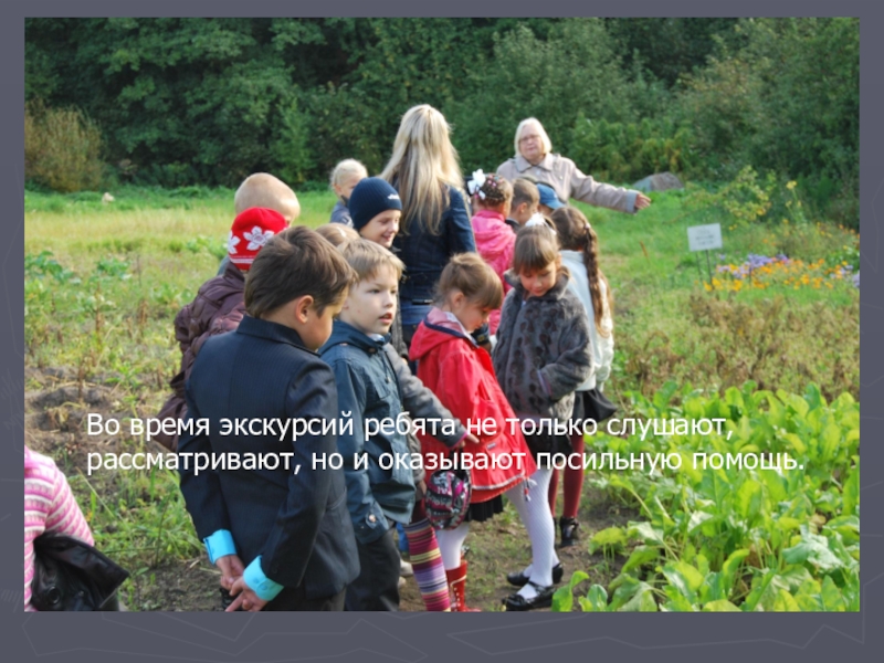Во время экскурсий ребята не только слушают,рассматривают, но и оказывают посильную помощь.