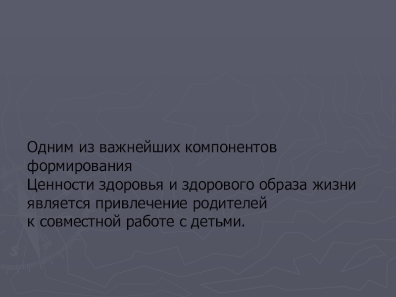 Одним из важнейших компонентов формирования Ценности здоровья и здорового образа жизни является привлечение родителей к совместной работе