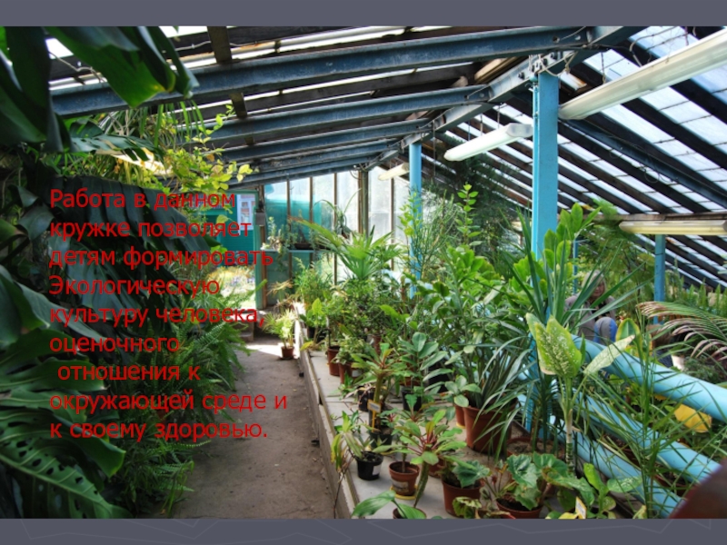 Работа в данном кружке позволяет детям формировать Экологическую культуру человека, оценочного отношения к окружающей среде и к