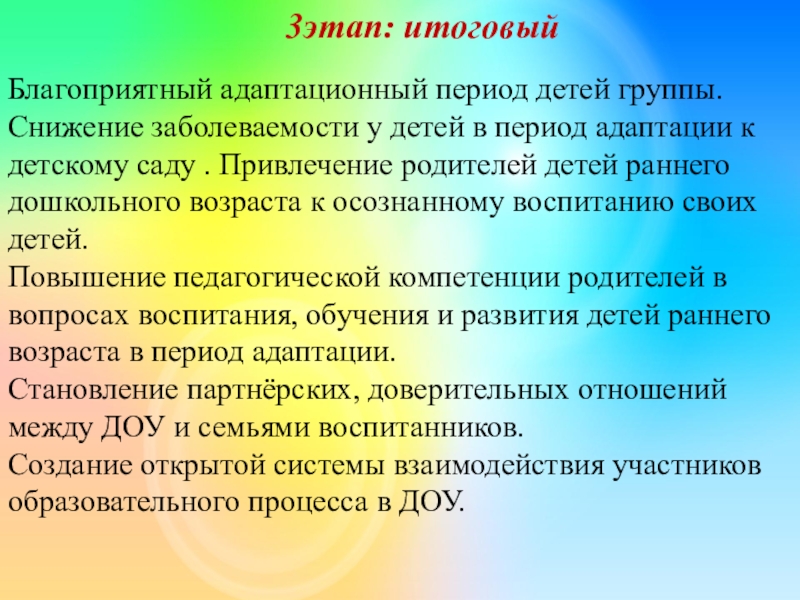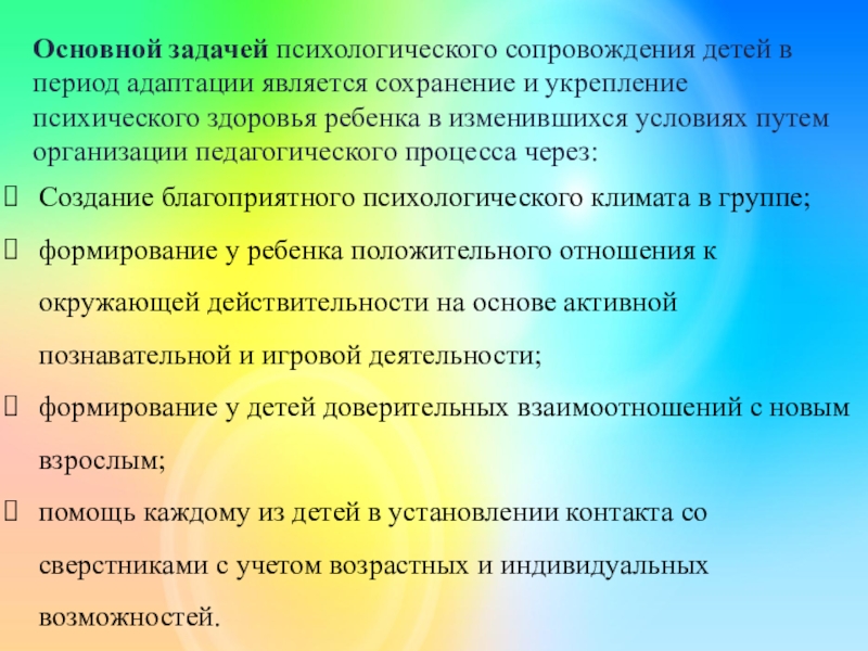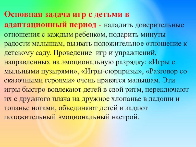 формирование у детей доверительных взаимоотношений с новым взрослым;
