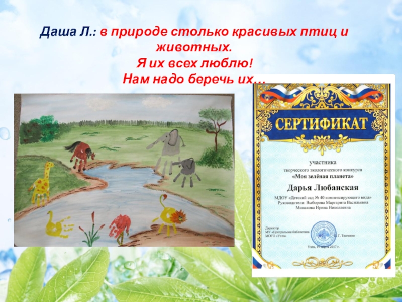 Слайд 43Даша Л.: в природе столько красивых птиц и животных.