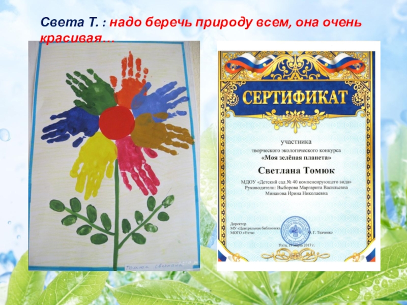 Слайд 41Света Т. : надо беречь природу всем, она очень красивая…