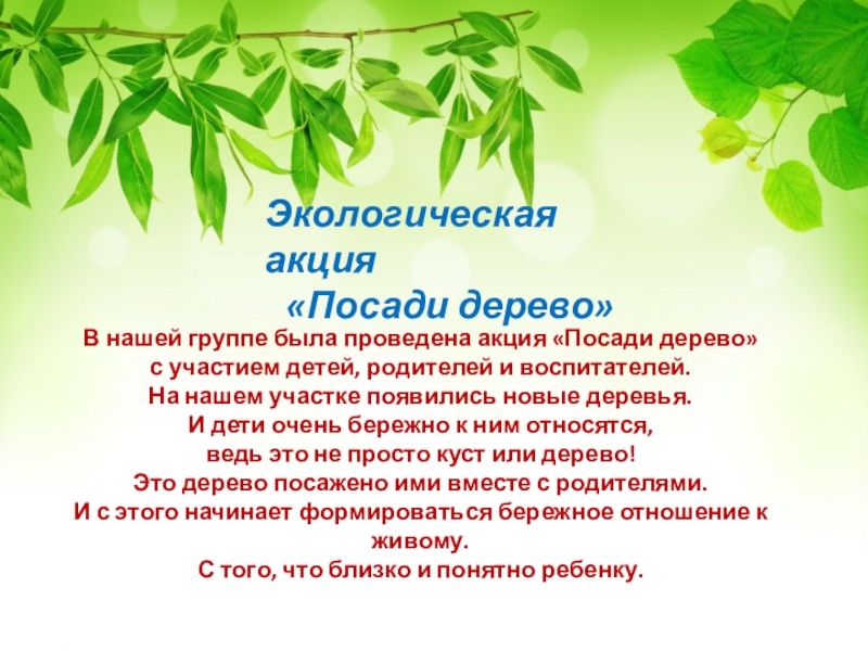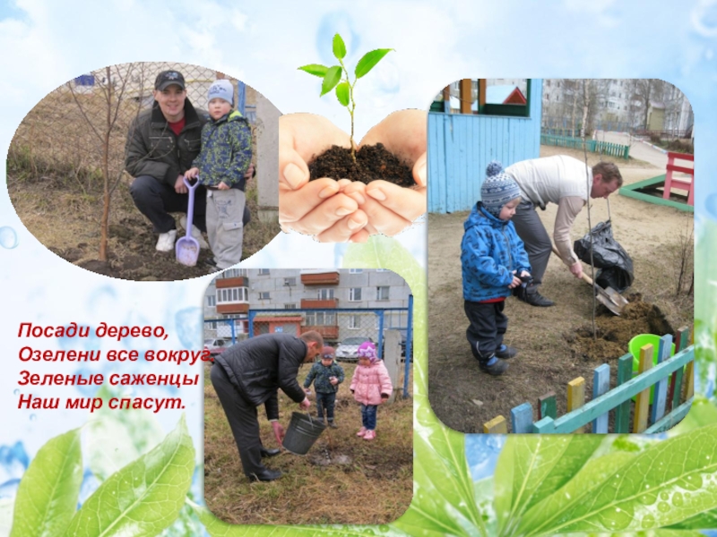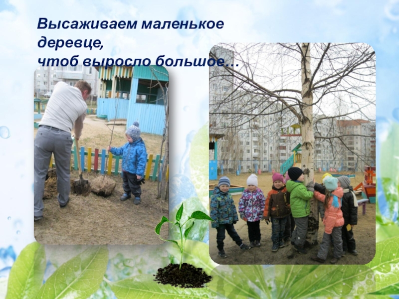 Слайд 8Высаживаем маленькое деревце,