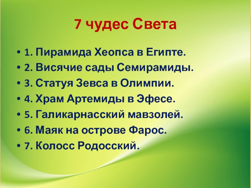Слайд 27 чудес Света