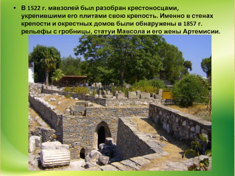 Слайд 18В 1522 г. мавзолей был разобран крестоносцами, укрепившими его плитами свою