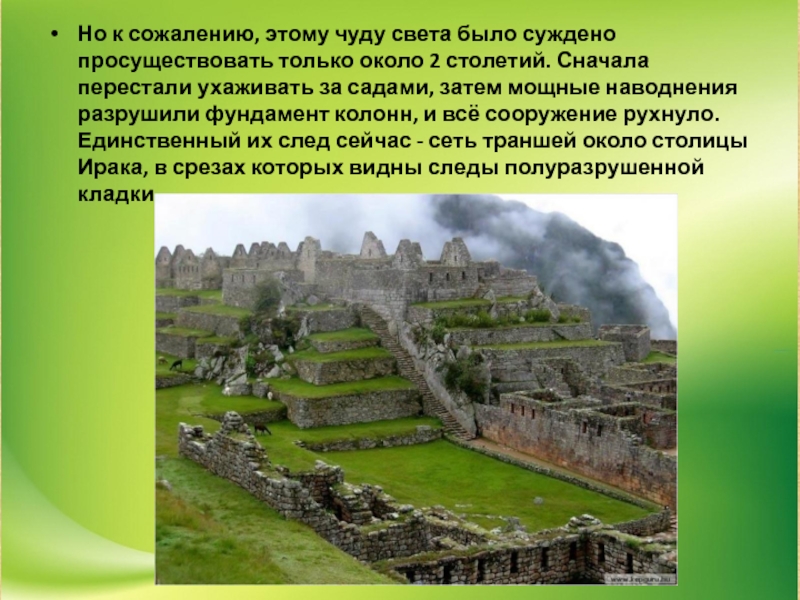 Слайд 10Но к сожалению, этому чуду света было суждено просуществовать только около