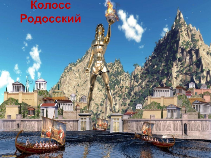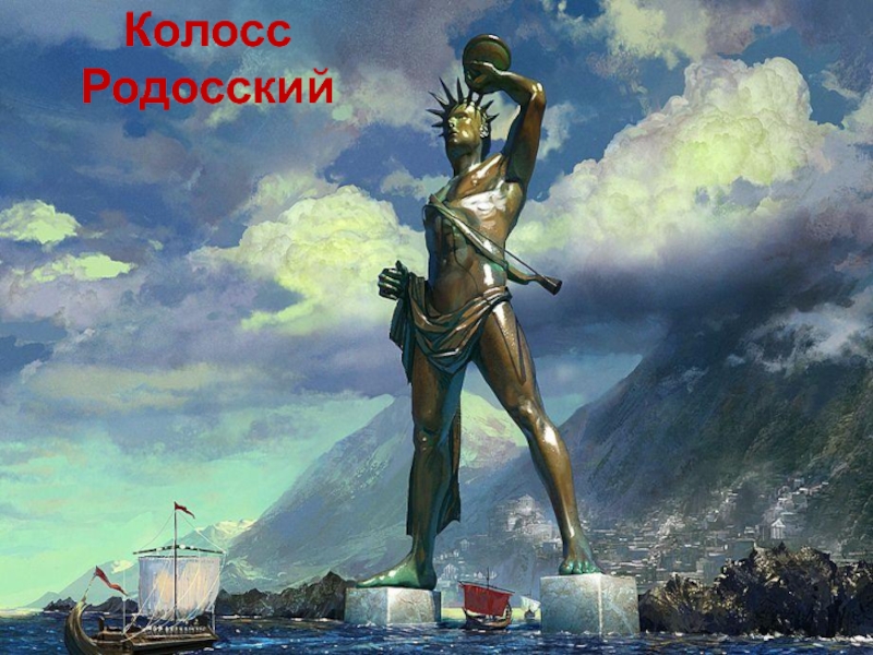 Слайд 27Слава о Колоссе РОдосском (колосс— большая статуя) быстро разнеслась по всему