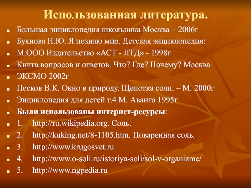 1. http://ru.wikipedia.org. Соль.