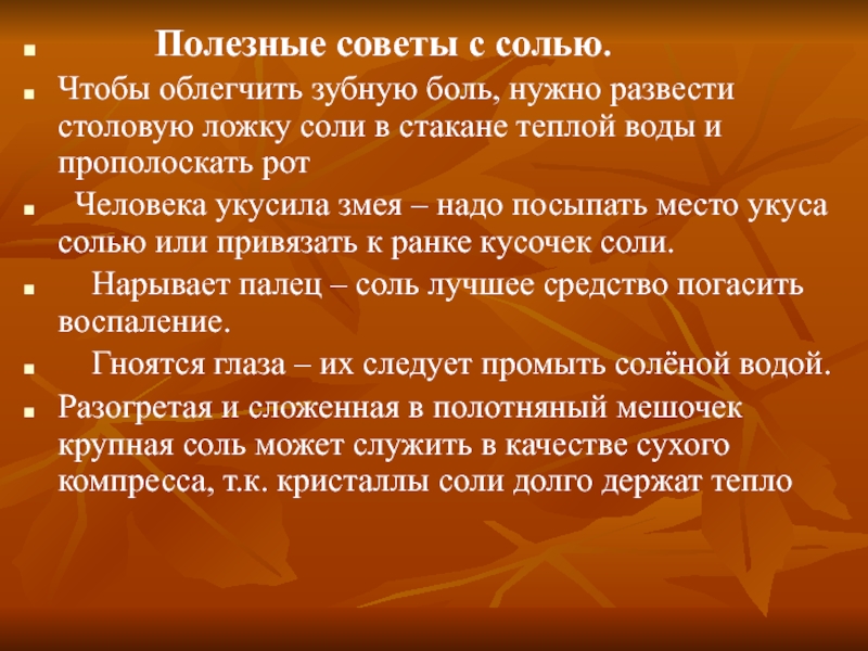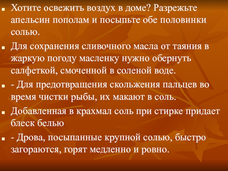 Слайд 18 Полезные советы с солью.