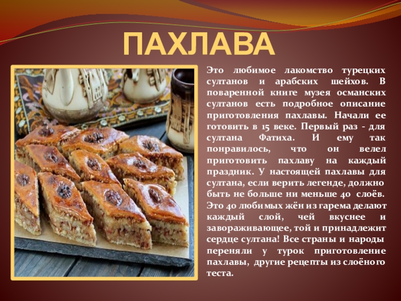 Происхождение слоёного теста очень-очень древнее. Одна из версий гласит, что изобрели его ассирийцы. Государства Ассирия, давно не существует, а рецепт все же остался.