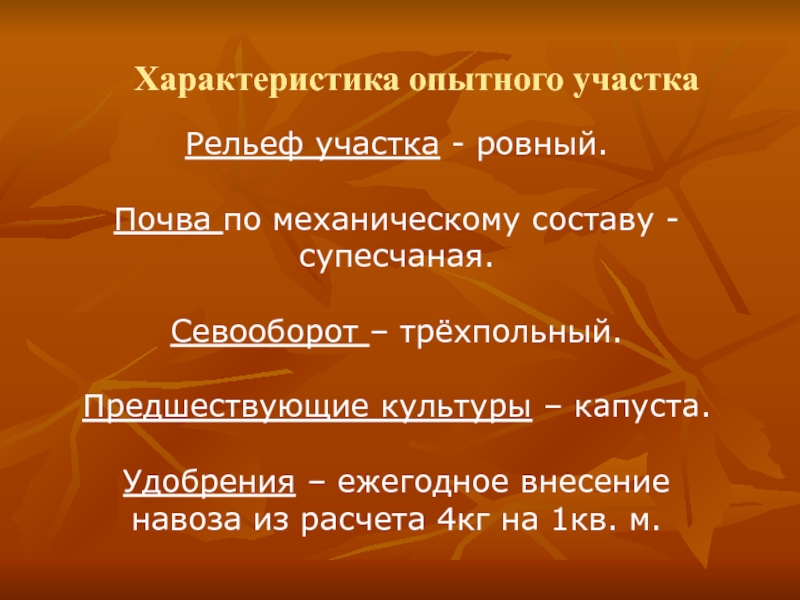 Характеристика опытного участка