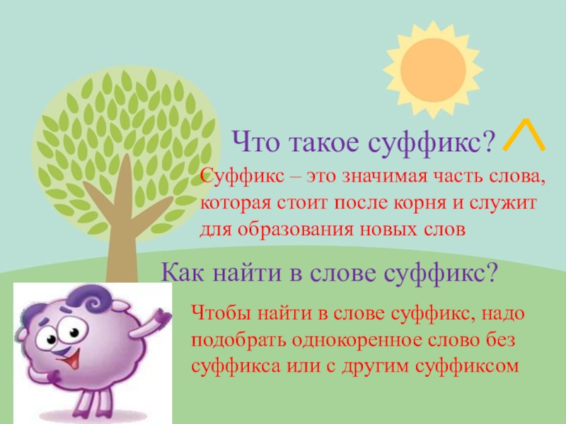 Чтобы найти в слове суффикс, надо подобрать однокоренное слово без суффикса или с другим суффиксом