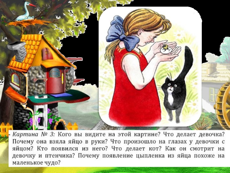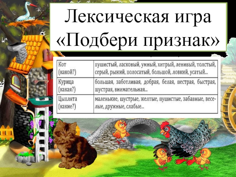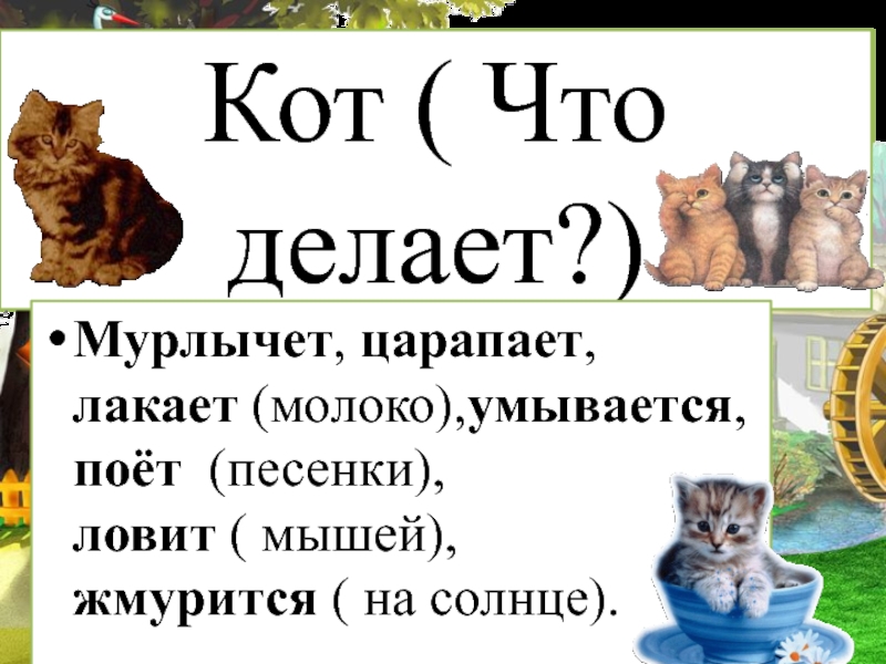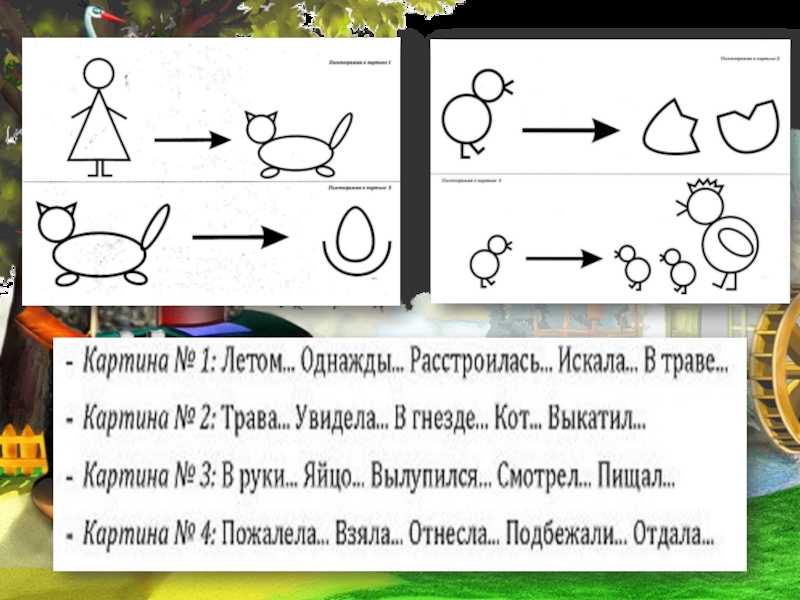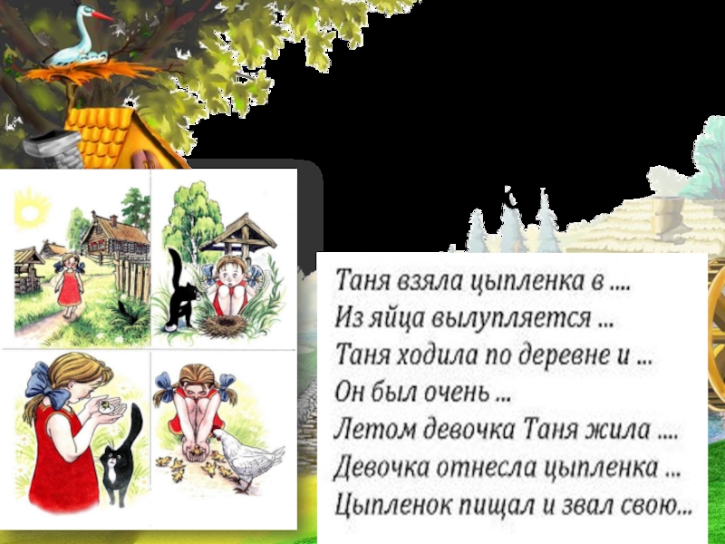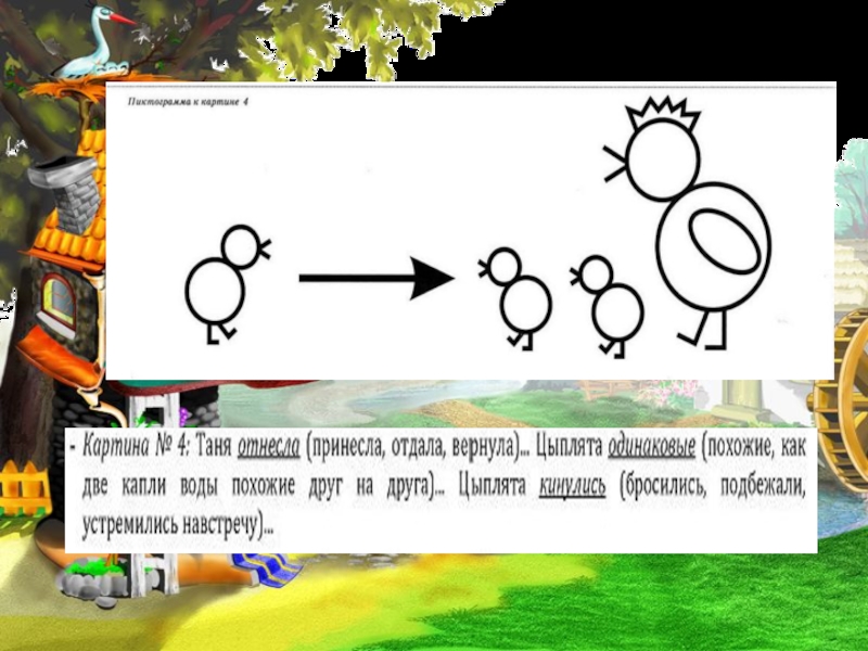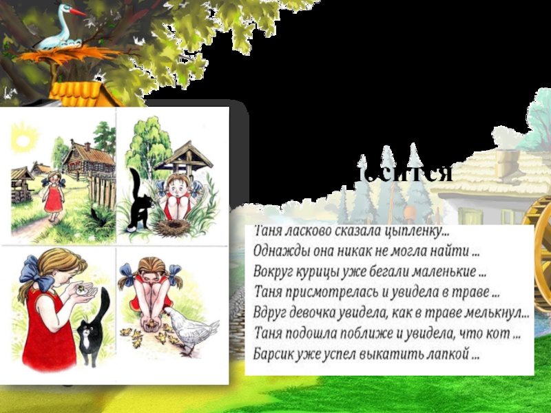 Квохчет, клюёт (зёрнышки), пьёт (воду), чистит (пёрышки), заботится ( о цыплятах)….