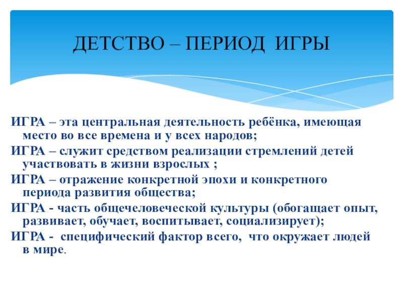 ДЕТСТВО – ПЕРИОД ИГРЫ