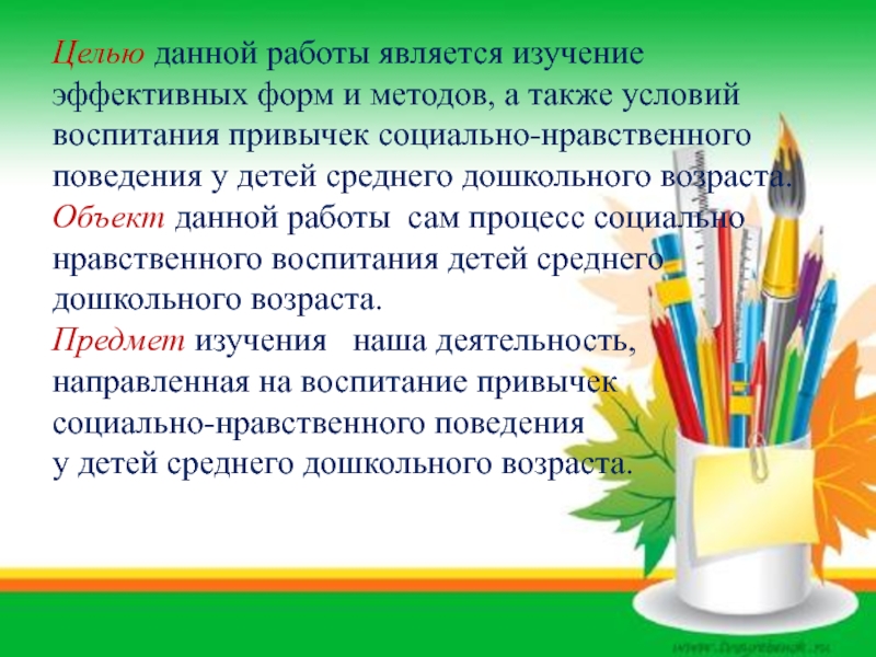 Предмет изучения наша деятельность, направленная на воспитание привычек