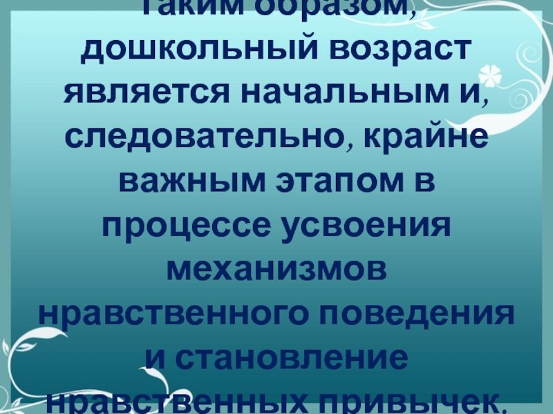 Слайд 6Таким образом, дошкольный возраст является начальным и, следовательно, крайне важным этапом