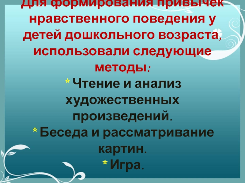 Слайд 8Для формирования привычек нравственного поведения у детей дошкольного возраста, использовали следующие