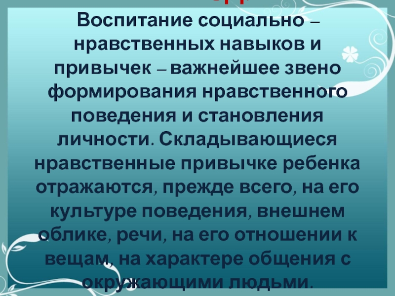 Воспитание социально – нравственных навыков и привычек – важнейшее звено формирования