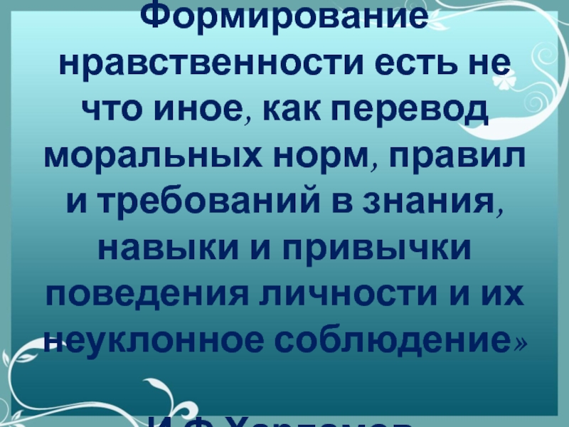 Слайд 2Формирование нравственности есть не что иное, как перевод моральных норм, правил