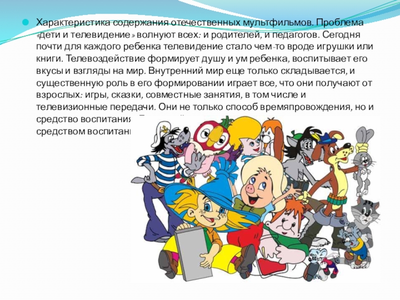 Характеристика содержания отечественных мультфильмов. Проблема «дети и телевидение» волнуют всех: и