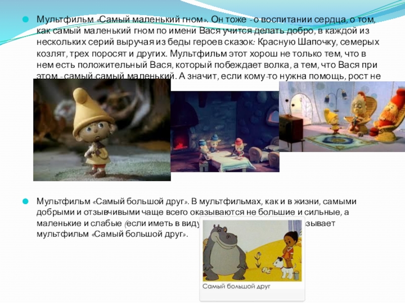 Слайд 19Мультфильм «Самый маленький гном». Он тоже - о воспитании сердца, о