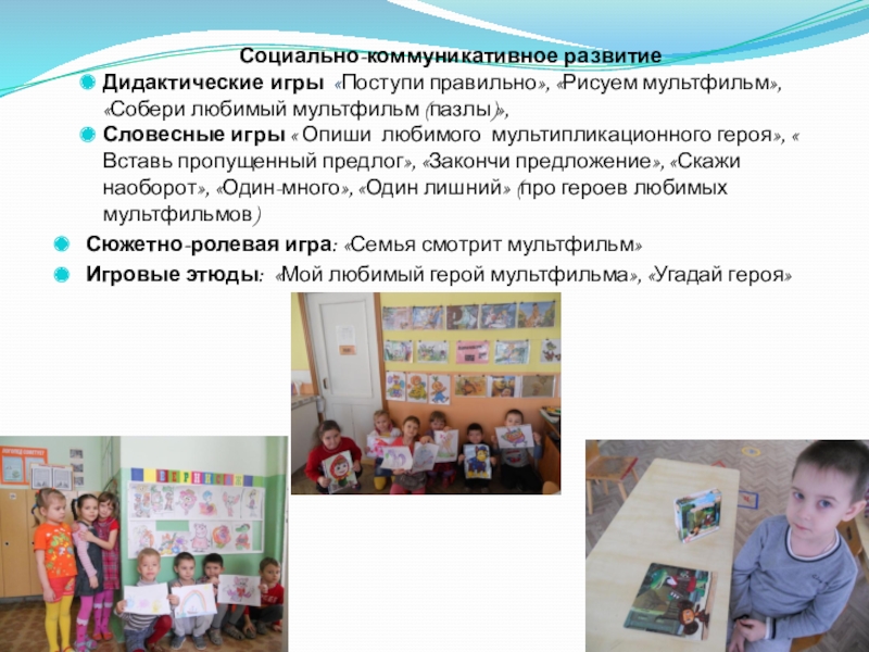 Дидактические игры «Поступи правильно», «Рисуем мультфильм», «Собери любимый мультфильм (пазлы)»,