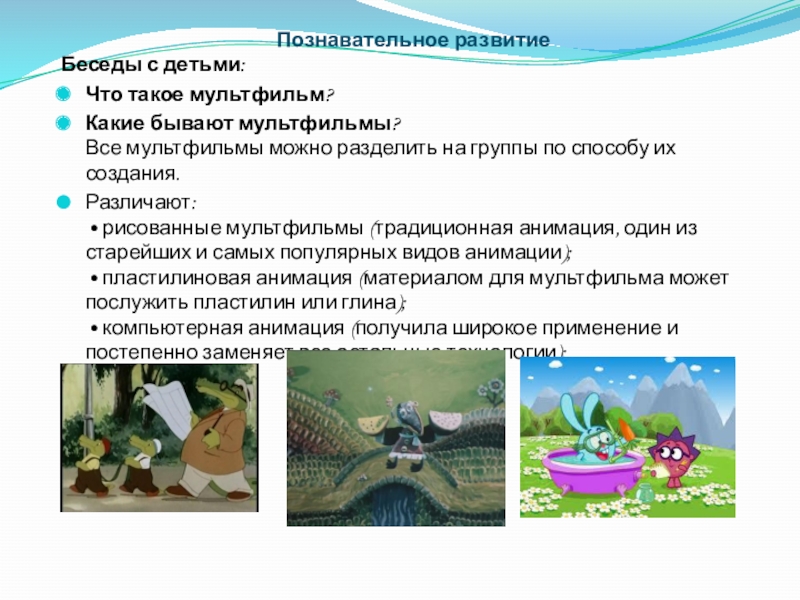 Рассмотреть положительное воздействие анимации при правильном подборе мультфильмов как развивающее пособие для: