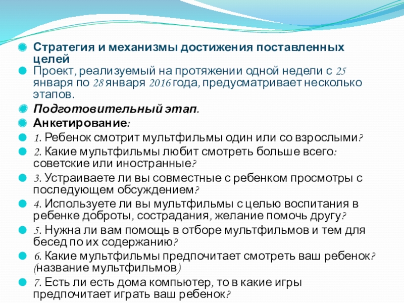 Провести исследование, какие мультфильмы нравятся детям и их родителям.