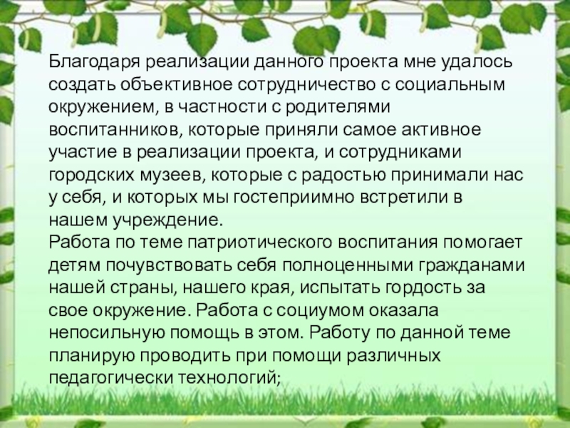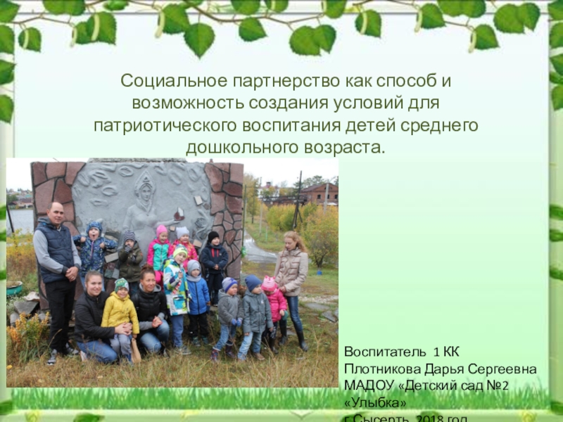 Социальное партнерство как способ и возможность создания условий для патриотического воспитания детей среднего дошкольного возраста.