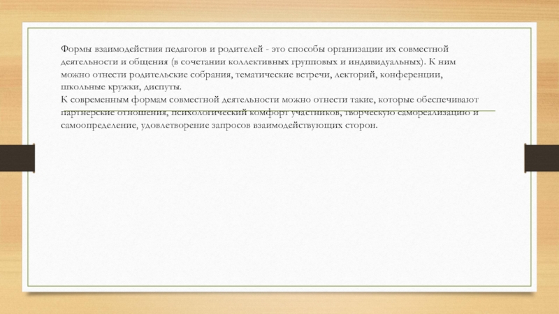 Слайд 4Формы взаимодействия педагогов и родителей - это способы организации их совместной