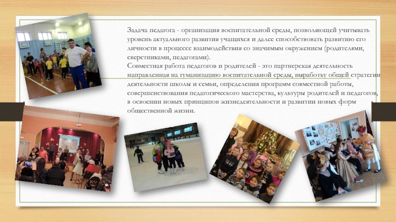 Совместная работа педагогов и родителей - это партнерская деятельность направленная на гуманизацию воспитательной среды, выработку общей стратегии деятельности школы и семьи, определения программ совместной работы, совершенствования педагогического мастерства, культуры родителей и педагогов, в освоении новых принципов жизнедеятельности и развитии новых форм общественной жизни.
