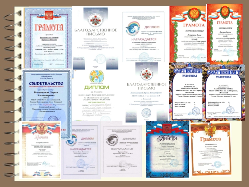 в школьных, городских и областных конкурсах социальных проектов: «Дорожка к ветерану», «Полотно Победы», «Благодарность внуков», «Гренадеры, вперёд!»