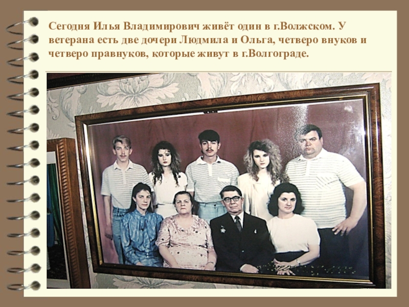 Слайд 45Сегодня Илья Владимирович живёт один в г.Волжском. У ветерана есть две