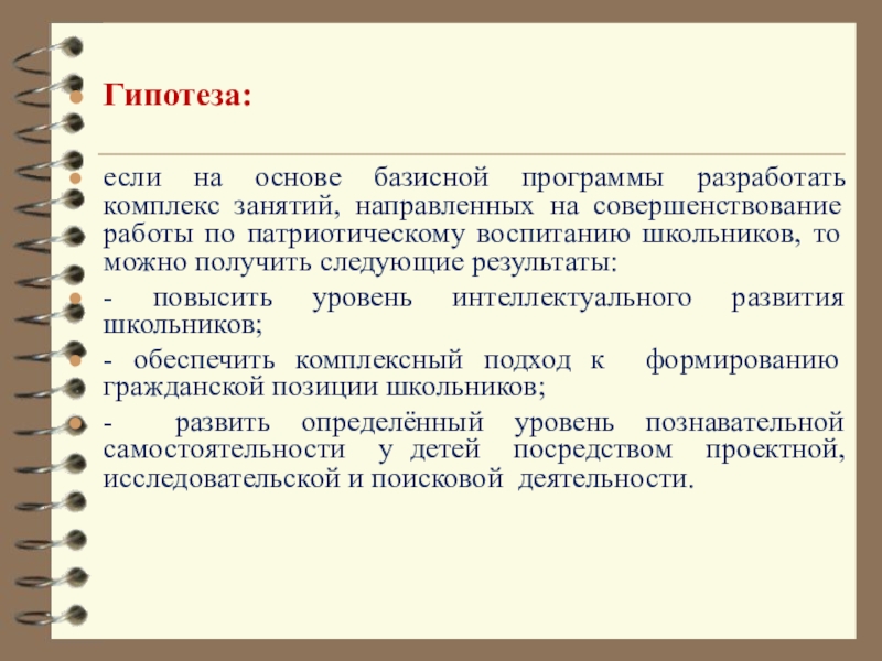 исходная предпосылка для проектирования процесса патриотического воспитания школьников.
