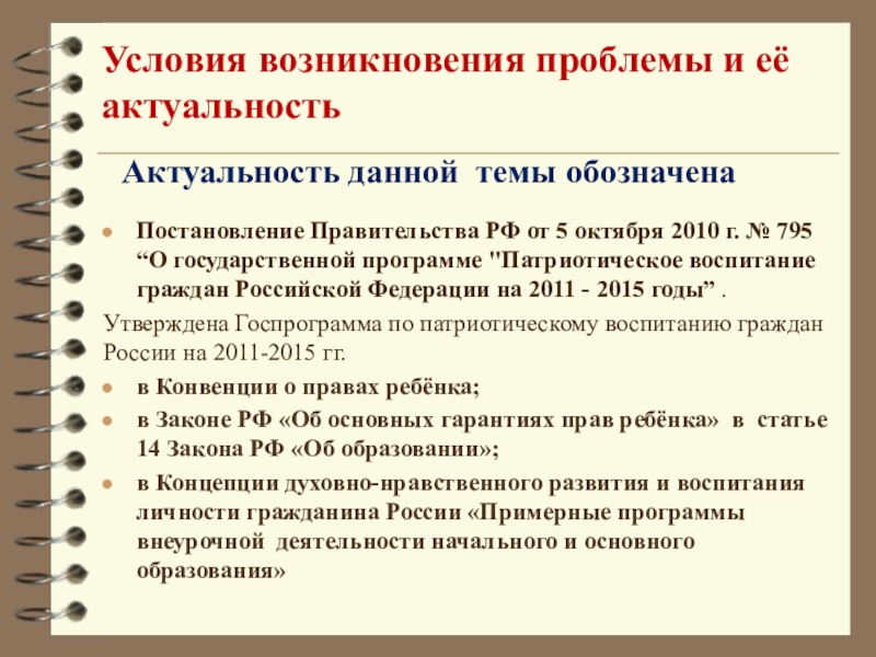 2010 г. № 795 “О государственной программе "Патриотическое воспитание граждан Российской Федерации на 2011 - 2015 годы” .